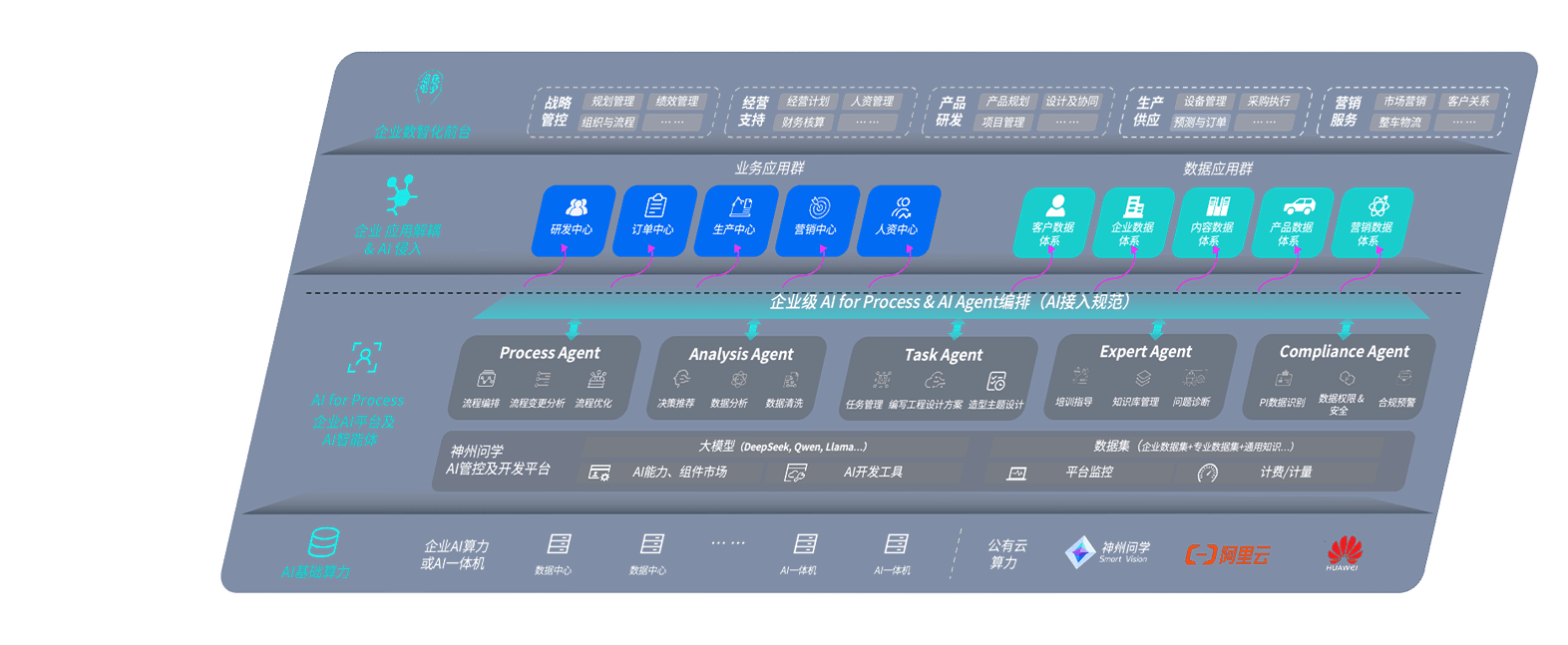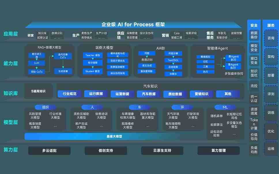 端到端的一站式AI工作空间深度融合了从企业战略规划到日常经营的全流程业务板块,,,定向解决车企内部领域多、、、部门多、、、链条长、、场景碎片化等难题,,,,支持车企快速构建以AI为核心的生产力写作体系,,实现任务执行与AI能力的无缝集成与交互